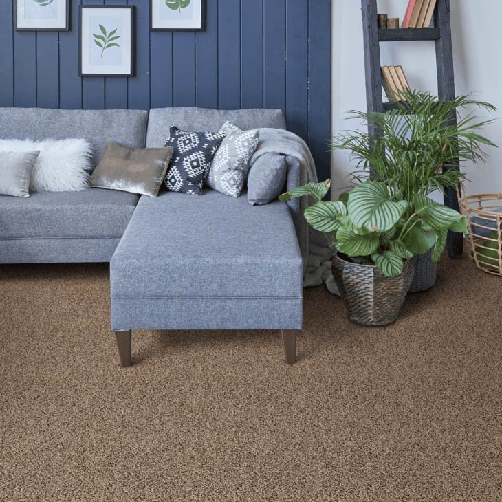 Carpet Flooring West Brow Glacier Falls staged in a blue themed room with plants and pictures.